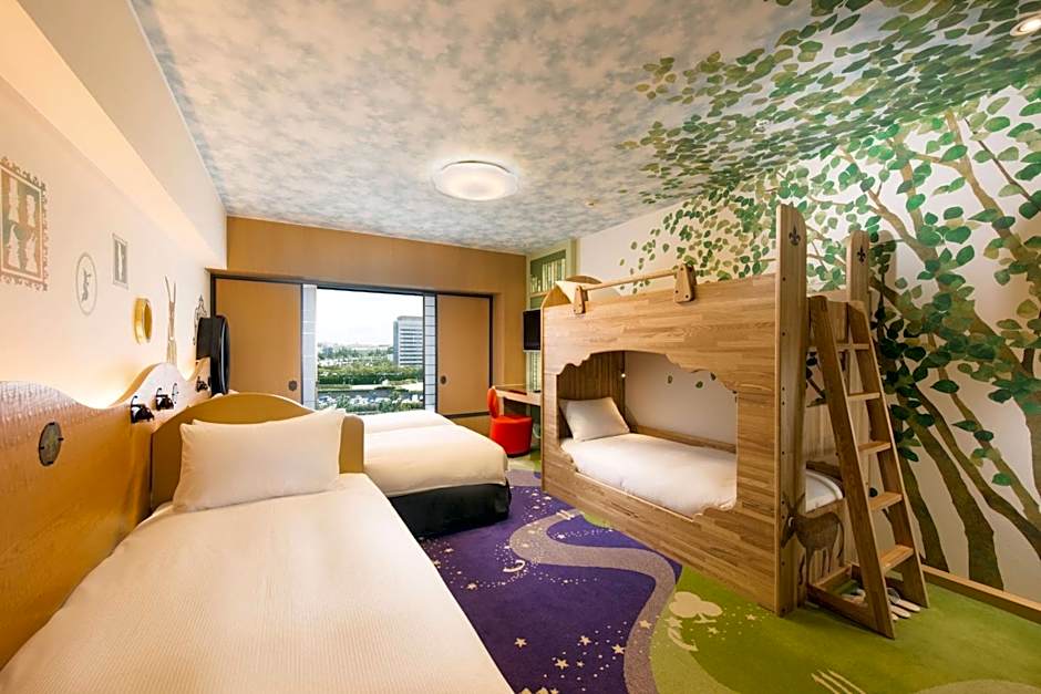 This uniquely designed theme room recreates the Magic Forest setting of the 'Happy Magic Story', a fairytale created exclusively for Hilton Tokyo Bay hotel. Features a flat-screen TV with DVD player. An extra bed will be prepared for a 4th guest, only when the booking is made for 4 people. Please indicate the correct number of guests at time of booking.