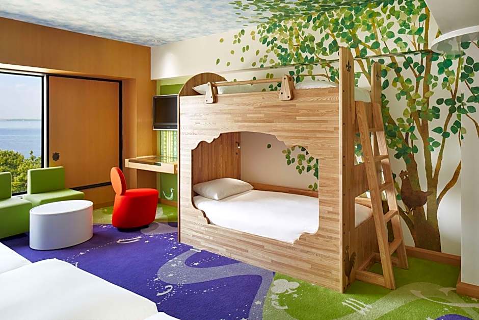 This uniquely designed theme room recreates the Magic Forest setting of the 'Happy Magic Story', a fairytale created exclusively for Hilton Tokyo Bay hotel. Features an ocean view and a flat-screen TV with DVD player.